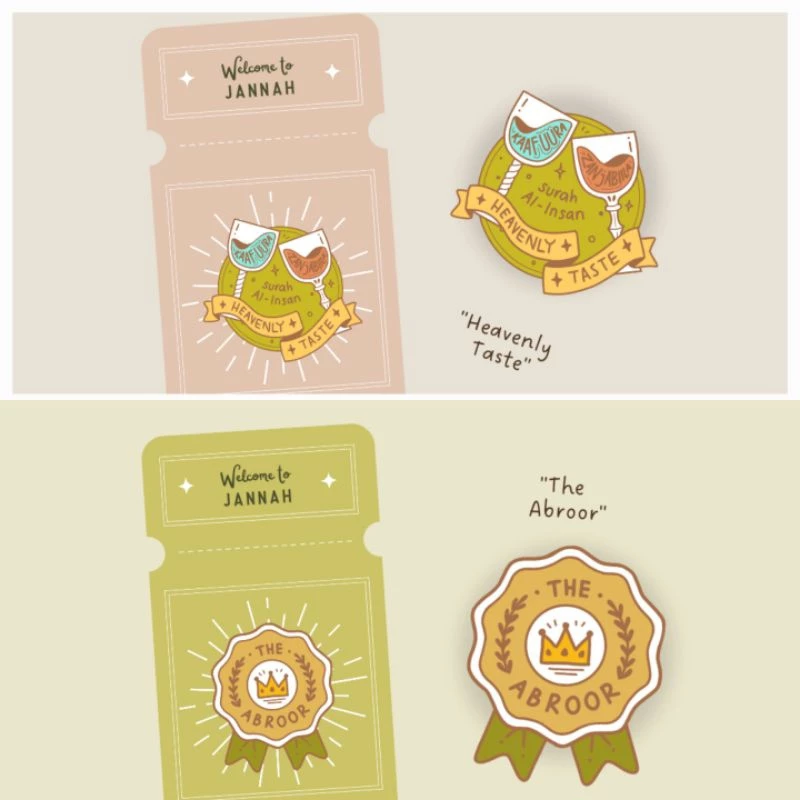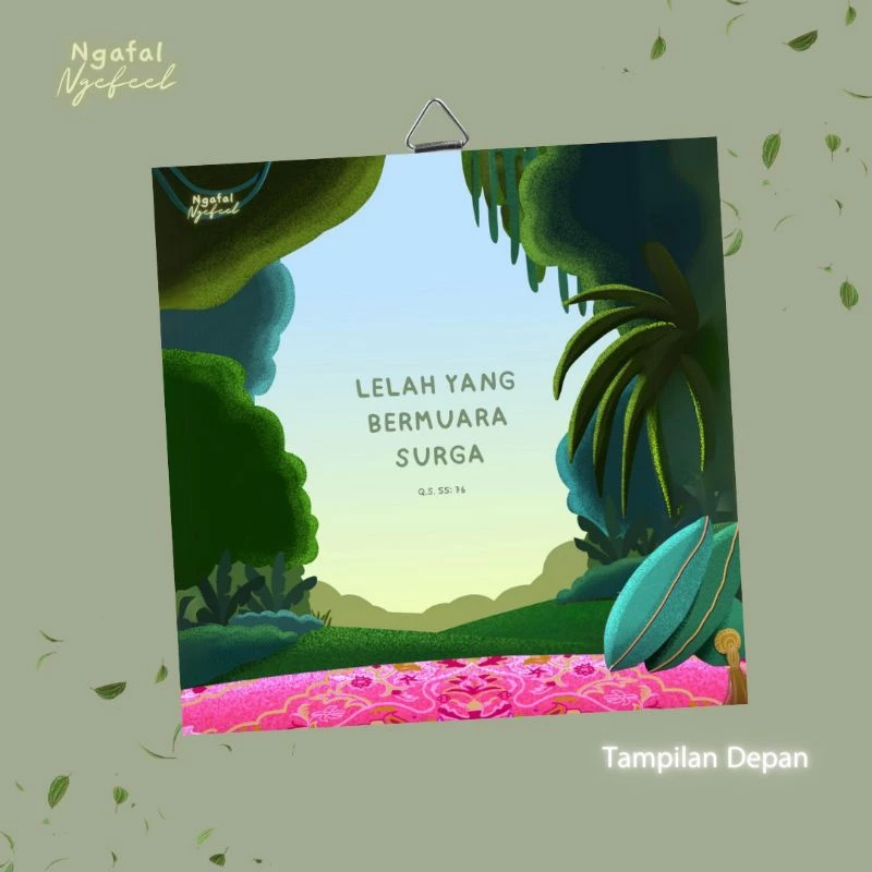 Ilustrasi ini terinspirasi dari surah Ar Rahman ayat 76 yang mengingatkan betapa indahnya surga dengan permadani indah yang dibentangkan di dalam rindangnya kebun.
